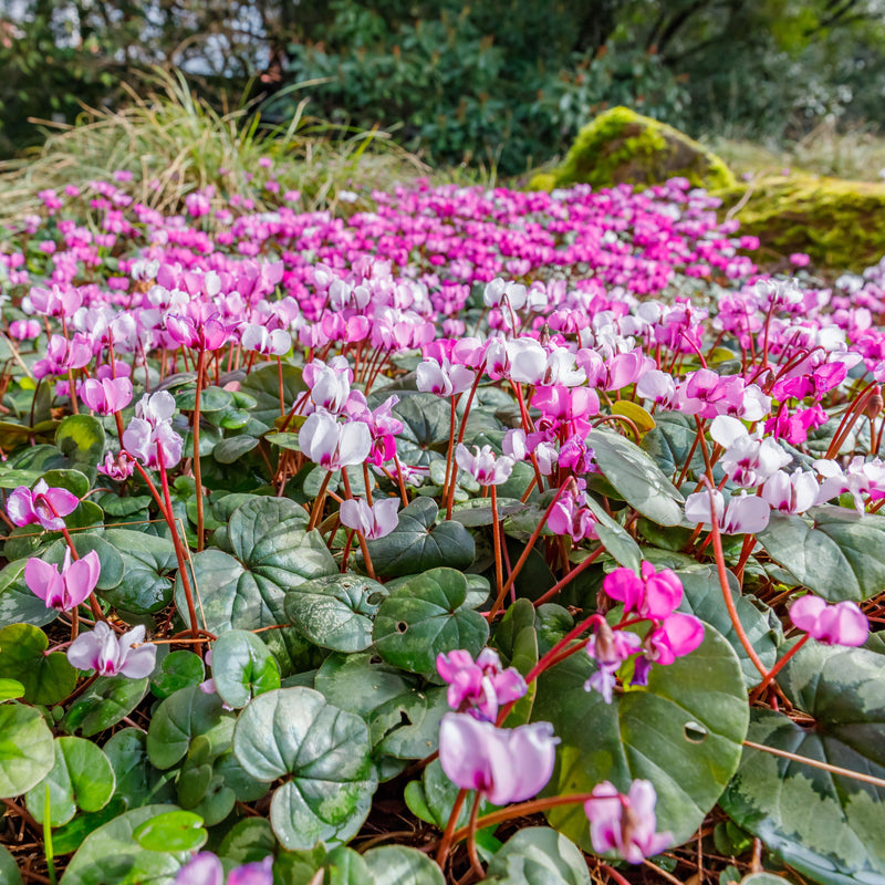 Make the shady spots in your garden feel pretty too with the enchanting white and pink blooms of hardy Cyclamen. These whimsical perennials form low mounds of dense, heart-shaped, silver-traced leaves with beaming, upswept blossoms. These little woodland plants' fluttering flowers lend a magical air to the garden from fall through spring and ask for very little care in return. Not to mention, they deliver a lovely fragrance and will naturalize and thrive with ease. Stunning when planted en masse, sweet in small containers, and, well, gorgeous in really any setting!