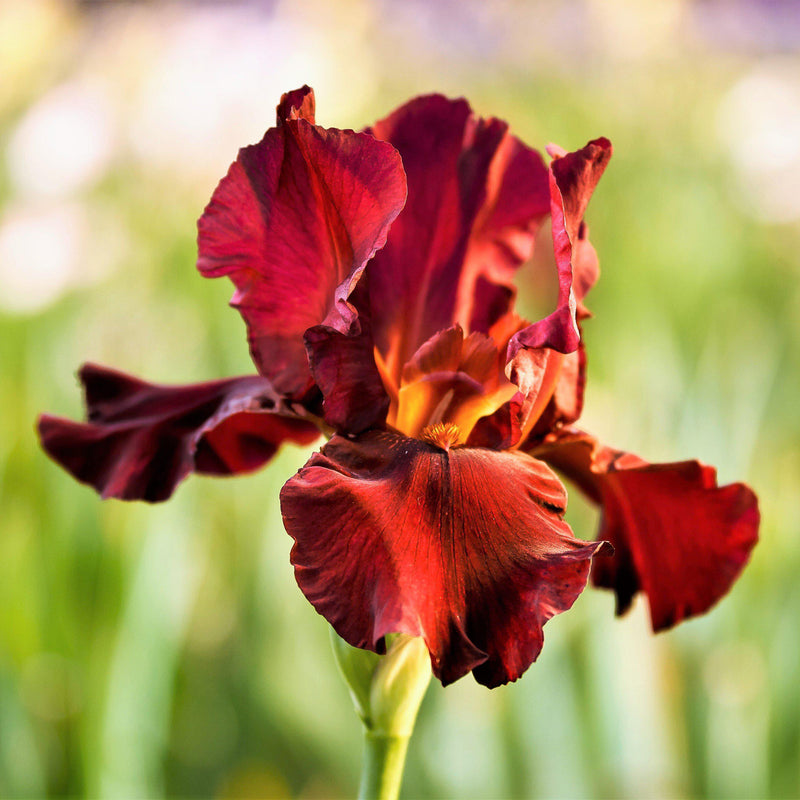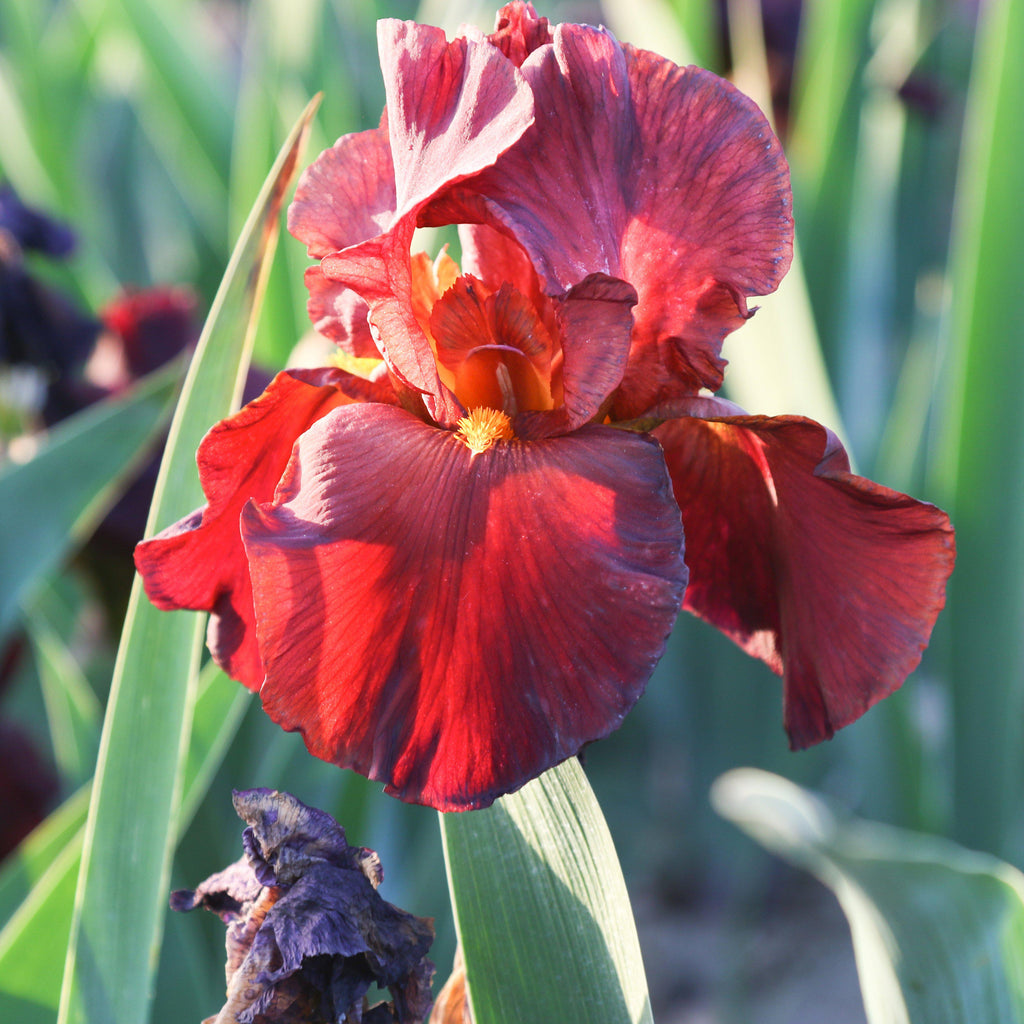 War Chief is a red reblooming bearded iris that absolutely glows in the sunlight. It’s rare to find a red colorfast Iris that won’t fade in full sun, but Iris War Chief meets the challenge head on, firing up every garden where it’s planted. During spring and fall, War Chief’s deep burgundy petals with striking indigo veins and a bright yellow beard set your garden aflame!
