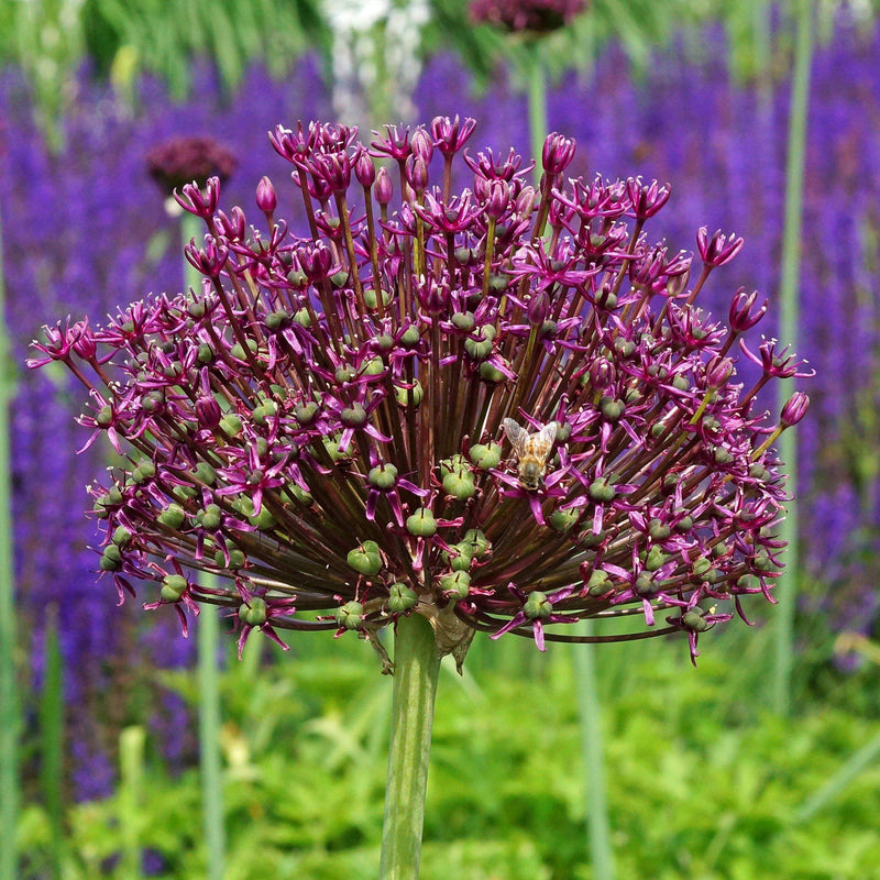 Allium Nigrum's snowy blooms are beautifully accented by the deep dark wine-colored flowers of Allium Atropurpureum. Hardy in zones 4 to 8, plant these beauties in the fall for a breathtaking display starting in early summer. Enjoy!