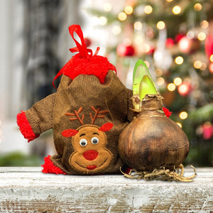 Narcissus - Paperwhite Bulbs in a Red Reindeer Gift Bag
