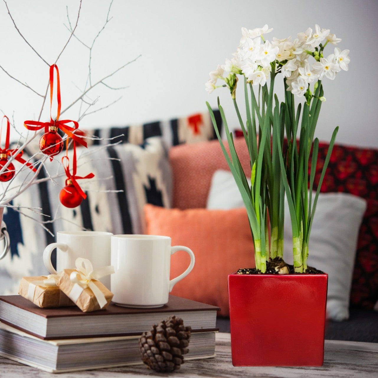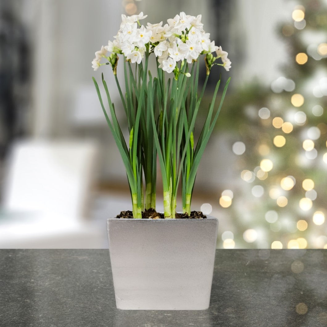 Narcissus - Paperwhite Bulbs in a Square Planter