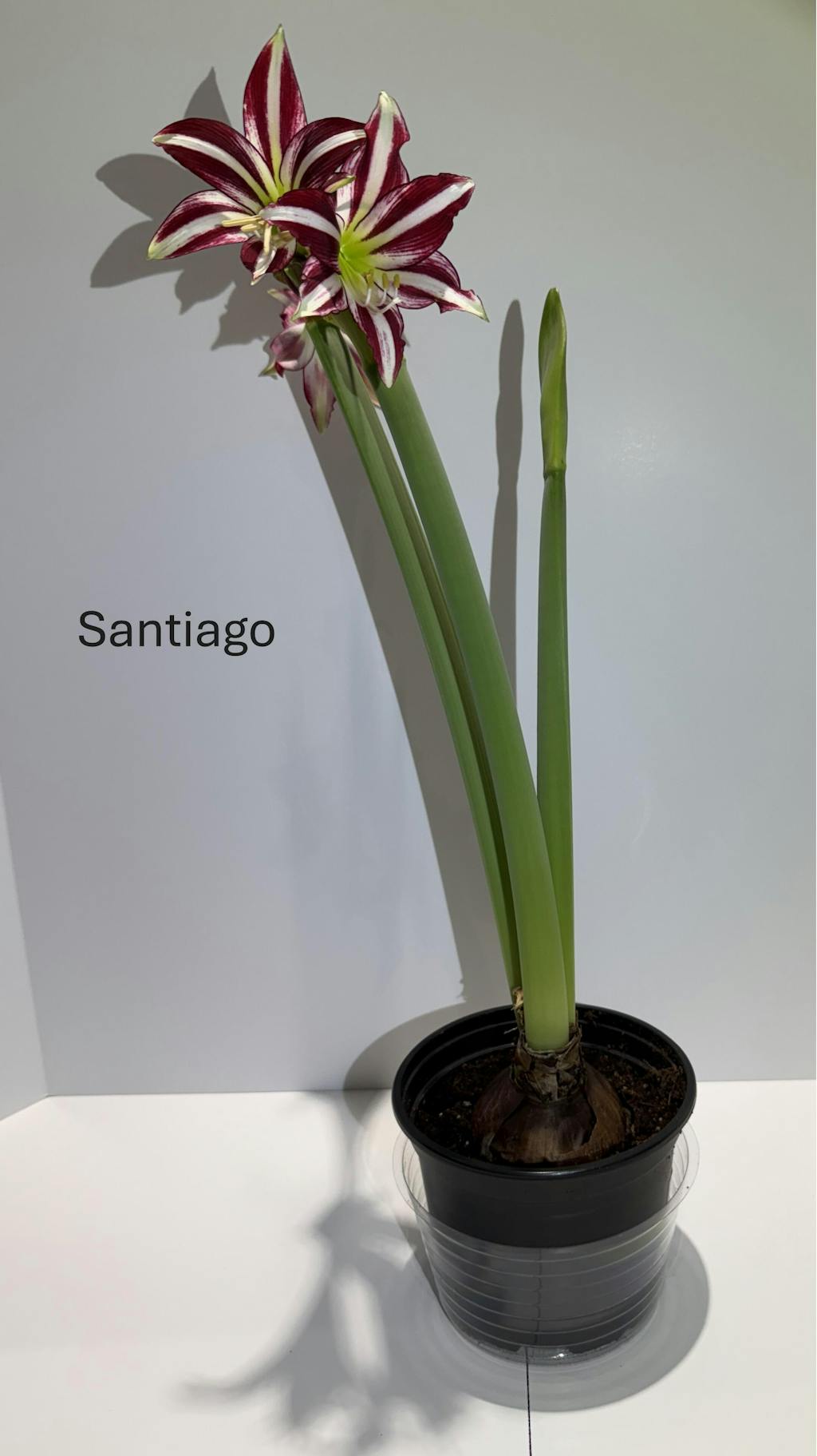 Order and plant early for holiday blooms, as Santiago can take up to 10 weeks to flower. Water sparingly until you see new green growth emerging from the top of the bulb.