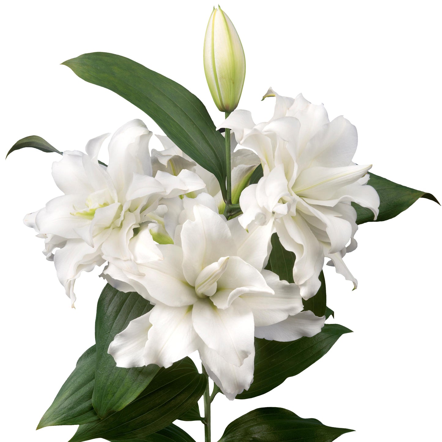 Undeniably fragrant and deserving of attention, Roselily Corolla is a stunning addition to any garden setting. The double white flowers are thick and robust, with long-lasting blooms that reach 4-10” in diameter. Best of all? They don't produce pollen, so you won't stain your clothes when you admire them.