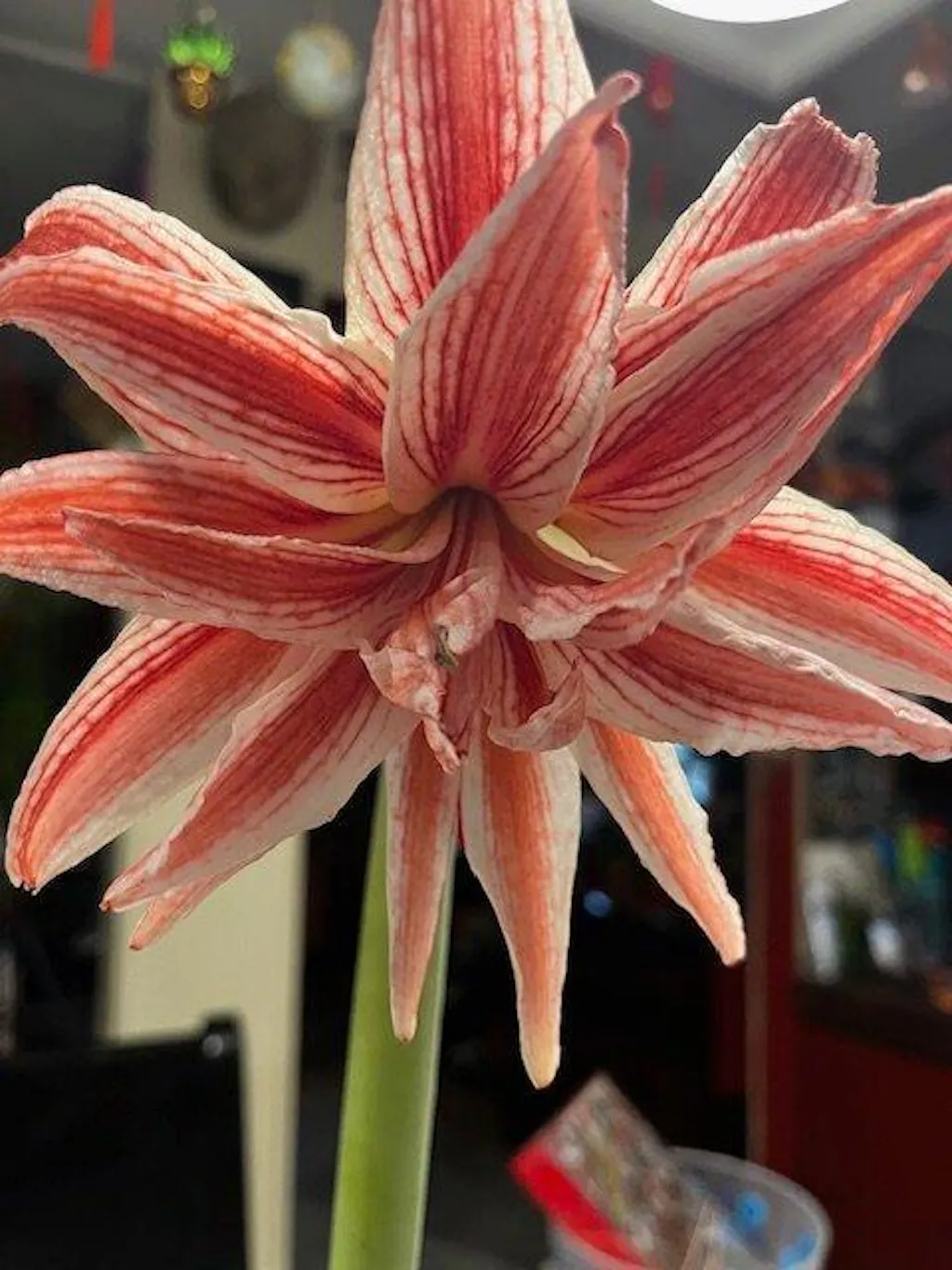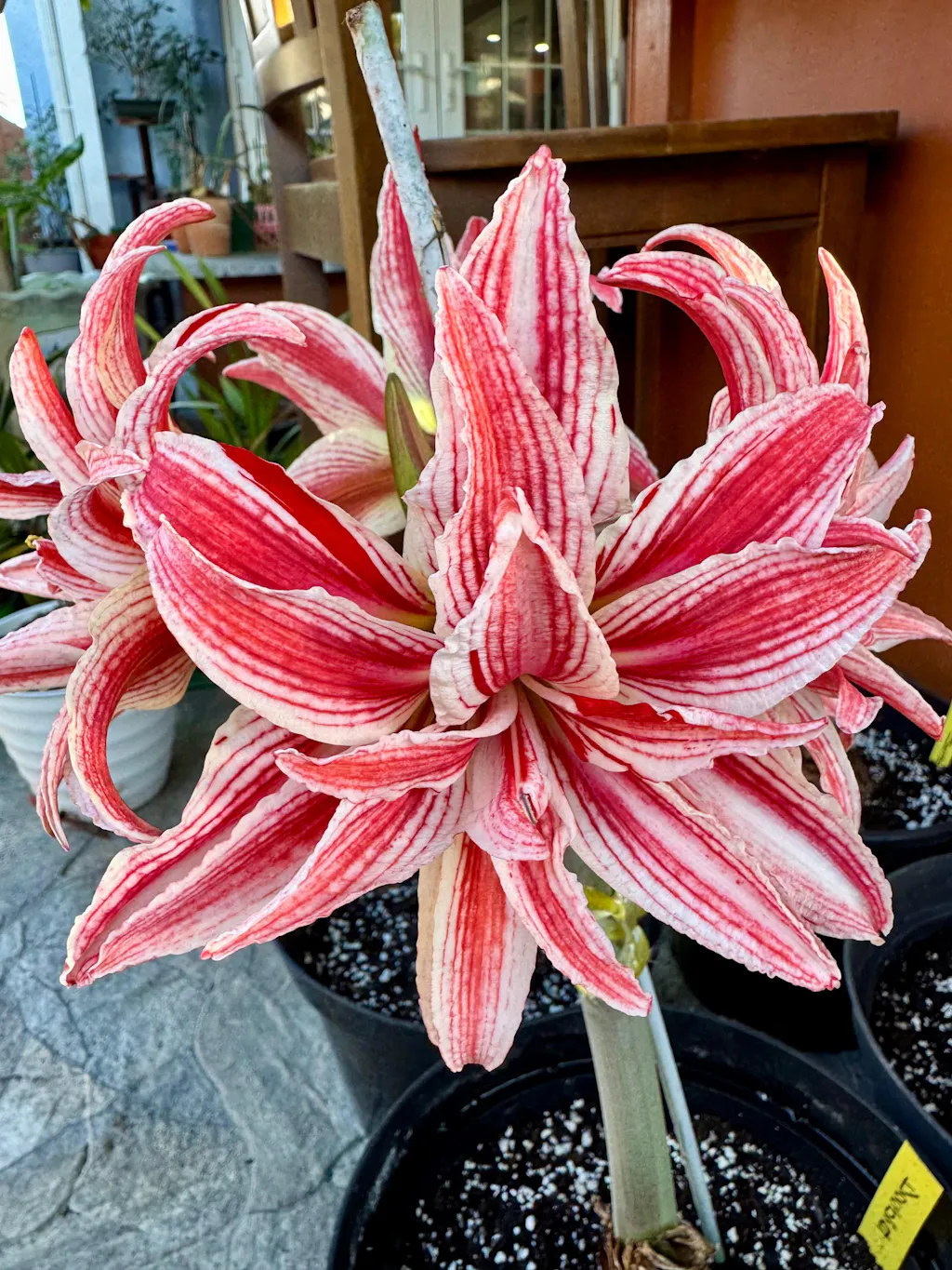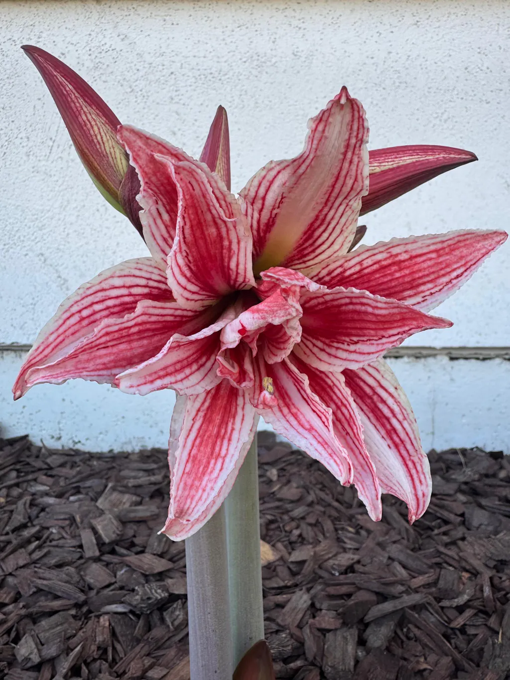 Amaryllis 'Doublet' captivates with its bold and slender double red and white striped blooms, each 7-8 inches wide that curve backwards. These stunning flowers emerge 6-10 weeks after planting, brightening your home for weeks on end. Thriving in bright light with regular watering, this easy-care bulb promises a vibrant display in your home. After blooming, simply let the leaves fade naturally and ease watering to keep your Amaryllis happy year after year. Add a splash of elegance and charm with 'Doublet' - a showstopper that’s as delightful to grow as it is to admire!