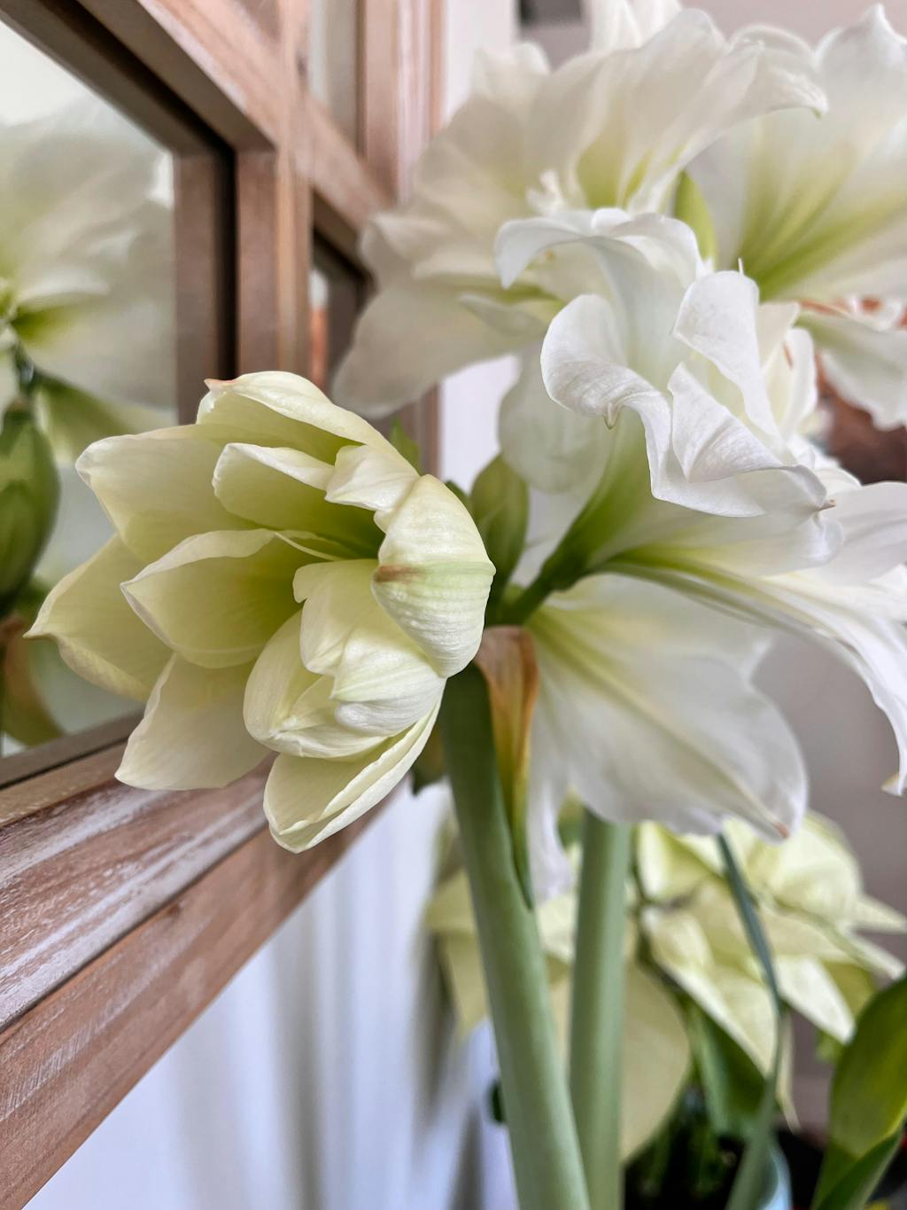 Amaryllis Snow Drift is an absolutely stunning double-form white Amaryllis. The petals bring to mind windblown curls of snow in rolling New England fields.