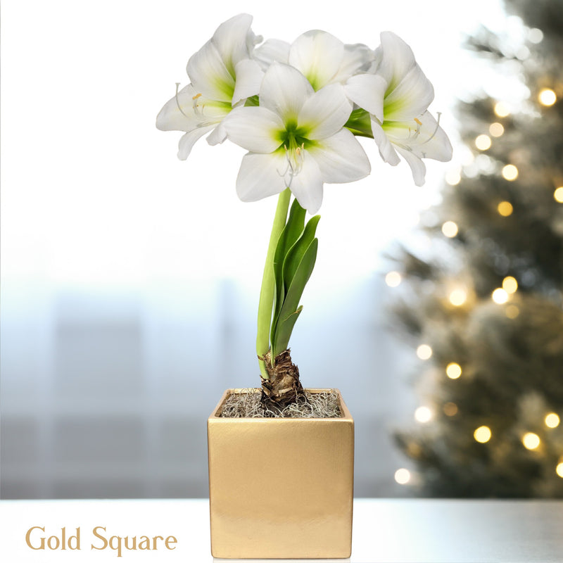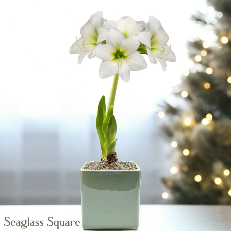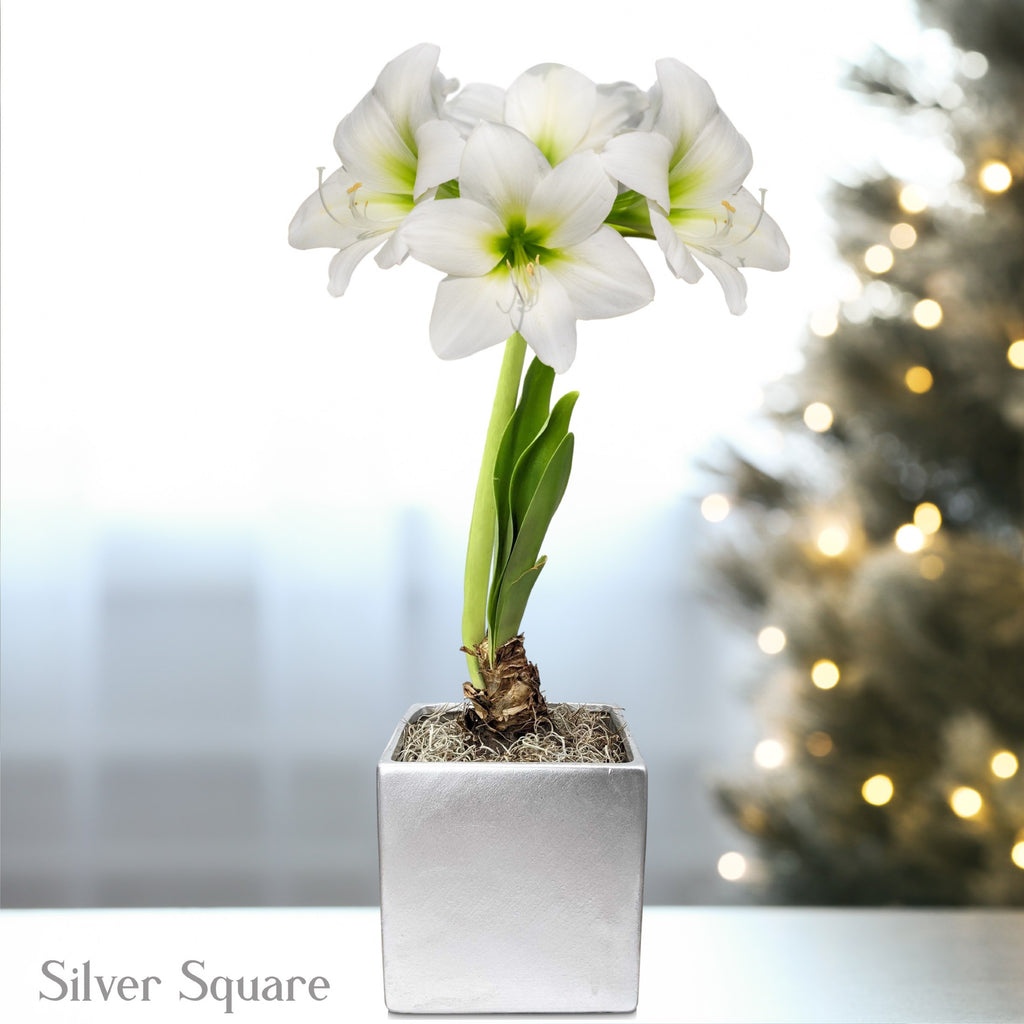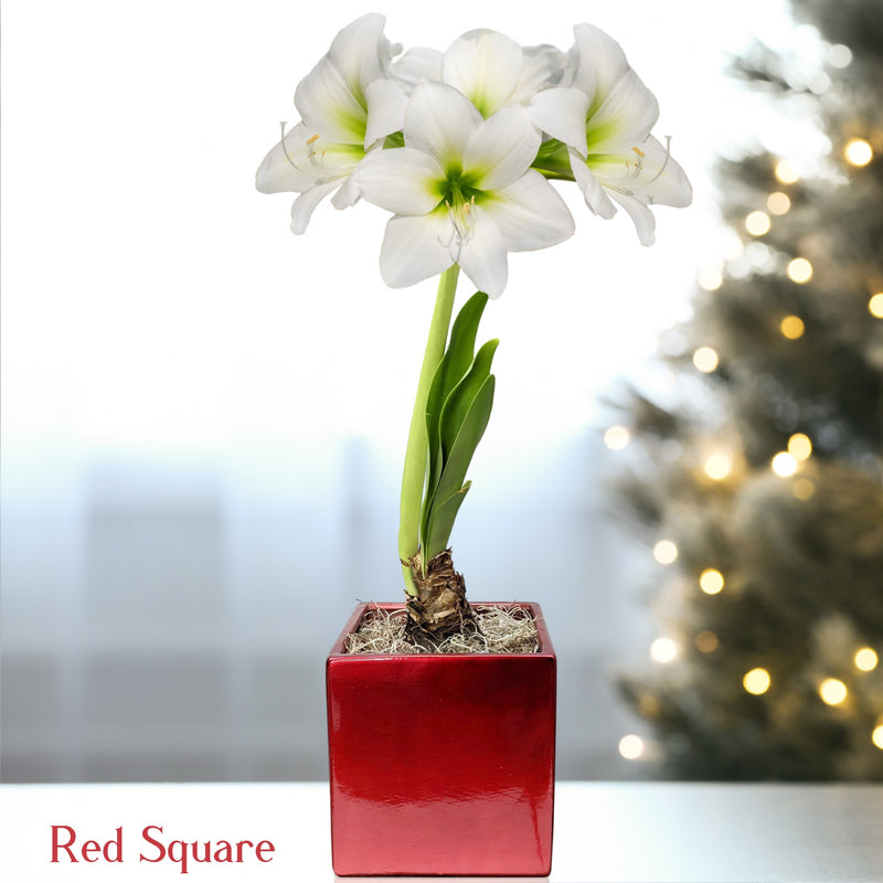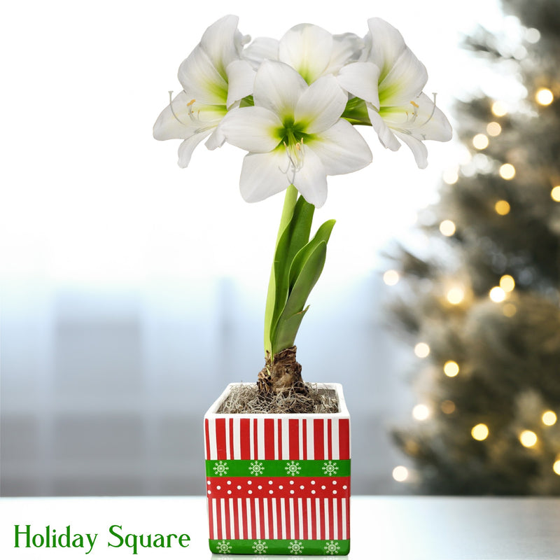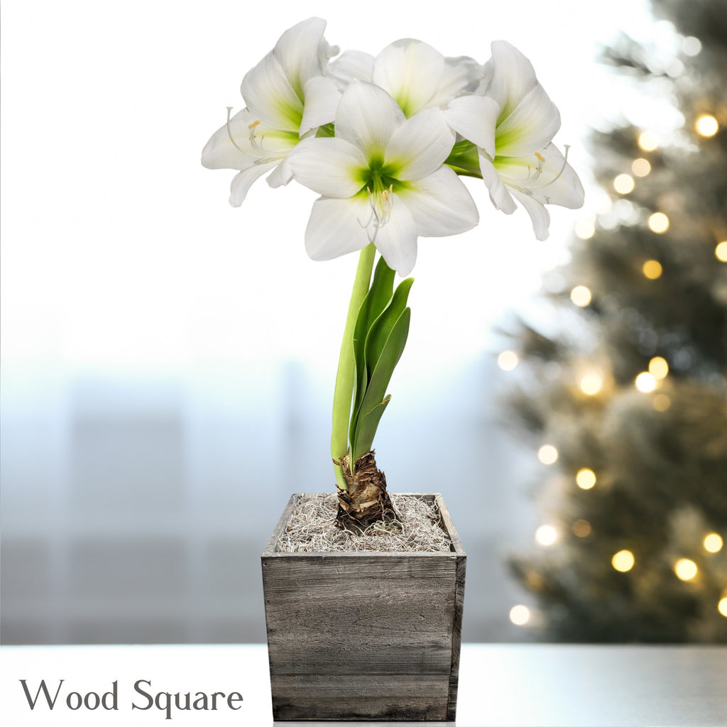 Pre-Planted Amaryllis White Christmas in a Square Planter