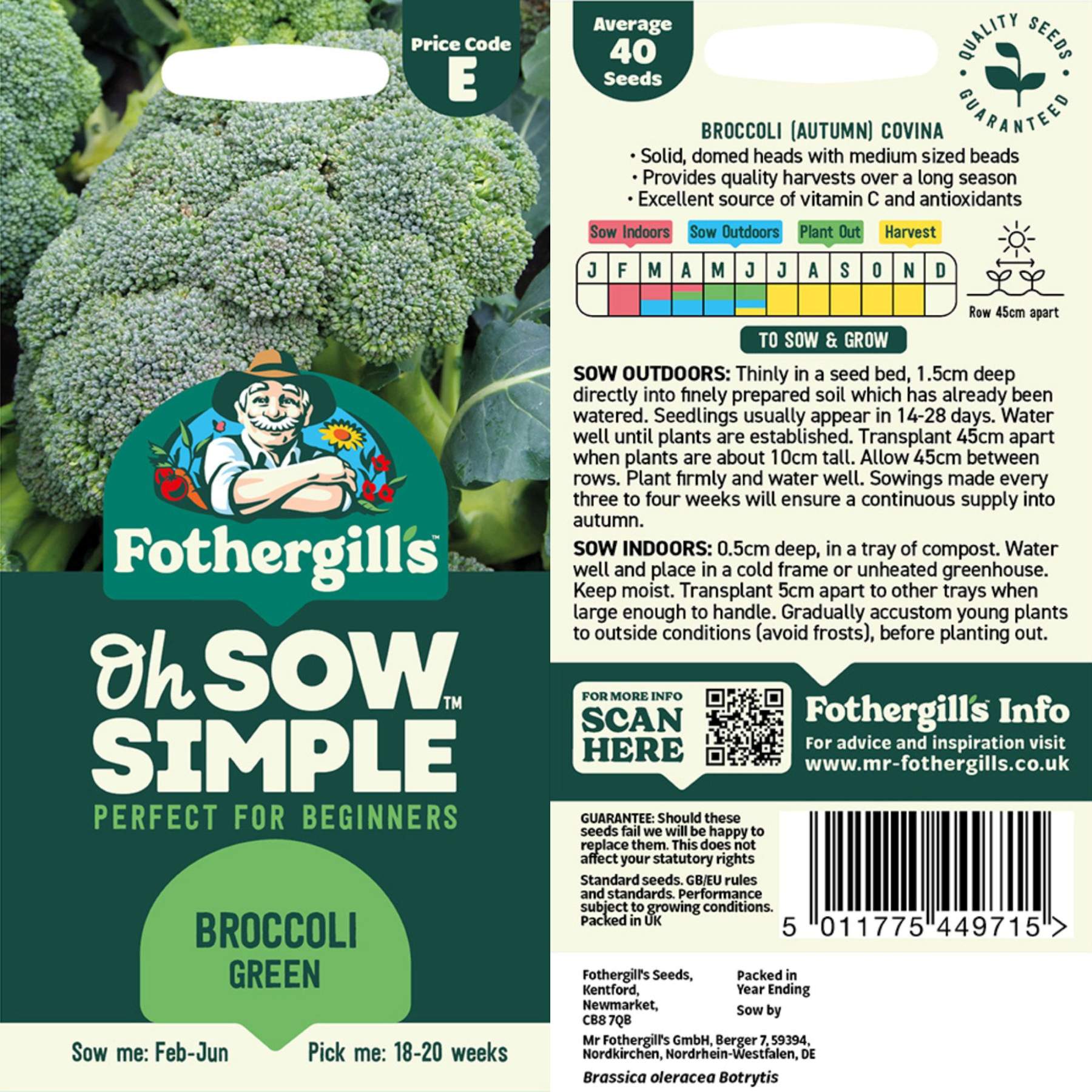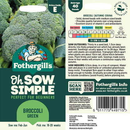 Combine your love of gardening with your love of cooking and grow your own Covina Broccoli seeds! With the Broccoli seeds from the Easy to Grow's Fothergill's Oh Sow Simple seed program you'll produce high-quality harvests across a long season. They can be sown outside between March and June and harvested between June and November - depending on when they were sown! Broccoli is a versatile vegetable that can be enjoyed in so many ways and in endless dishes - so get growing now!