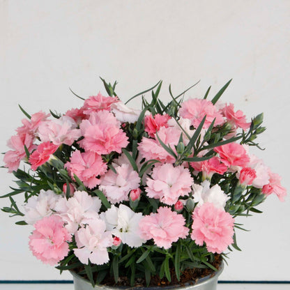 Meet Dianthus Everlast Pink to White, a stunning, long-blooming perennial that transitions from soft pink to a crisp white as its flowers mature. This compact beauty offers continuous color from late spring through fall for an elegant, ever-changing display. Its fragrant, double blooms sit atop sturdy stems, making it perfect for borders, containers, or cutting gardens. Growing between 8 to 12" tall, this Dianthus variety is easy to care for and thrives in full sun with moderate water needs. Not to mention, it’s also hardy, low-maintenance, and drought-tolerant, making it a perfect choice for anyone!