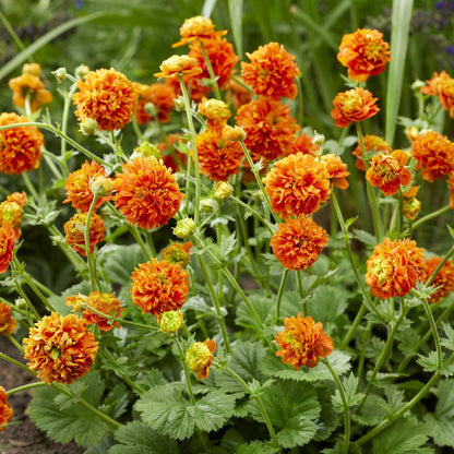 Set your garden ablaze with Geum Pumpkin Orange, a cheerful perennial that blooms with vibrant, double orange flowers from spring to late summer. The bold blooms rise above attractive mounds of deep green foliage, creating a stunning contrast.
