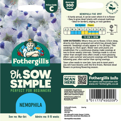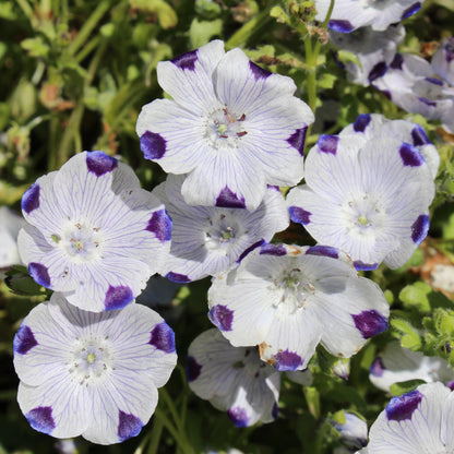 Add a unique touch to your garden with Nemophila seeds. Featuring white petals with blue-violet tips, these flowers bloom from June to October when planted between March and May. At just 6 inches tall, they're perfect for borders, edging, or rock gardens. Plus, they're incredibly easy to grow.