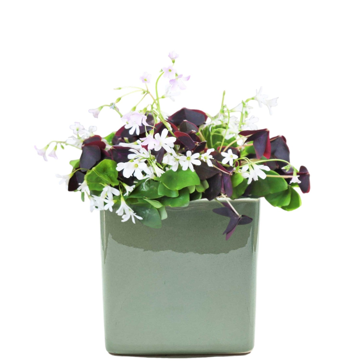 Your gorgeous, pre-planted Oxalis bulbs will arrive neatly tucked away in a square container of your choice. Simply give them some water and sunlight, and you'll be enjoying glorious mounds of handsome green and deep purple foliage with tiny, delightful blooms in no time!