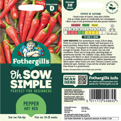 Grow your own spicy peppers with Pepper Hot Red seed from Easy to Grow! These vibrant red peppers are easy to sow and reach a height of 3-4 feet tall. Enjoy the delicious taste and health benefits of homegrown peppers. Lots of small red fruits with just enough bite to heat and spice up stews, salads and stir fries. Peppers are a vital part of the cooking for so many dishes. Best crops will be achieved in a greenhouse, but smaller, later crops can be produced when grown in a sunny sheltered location outdoors. Get yours today!