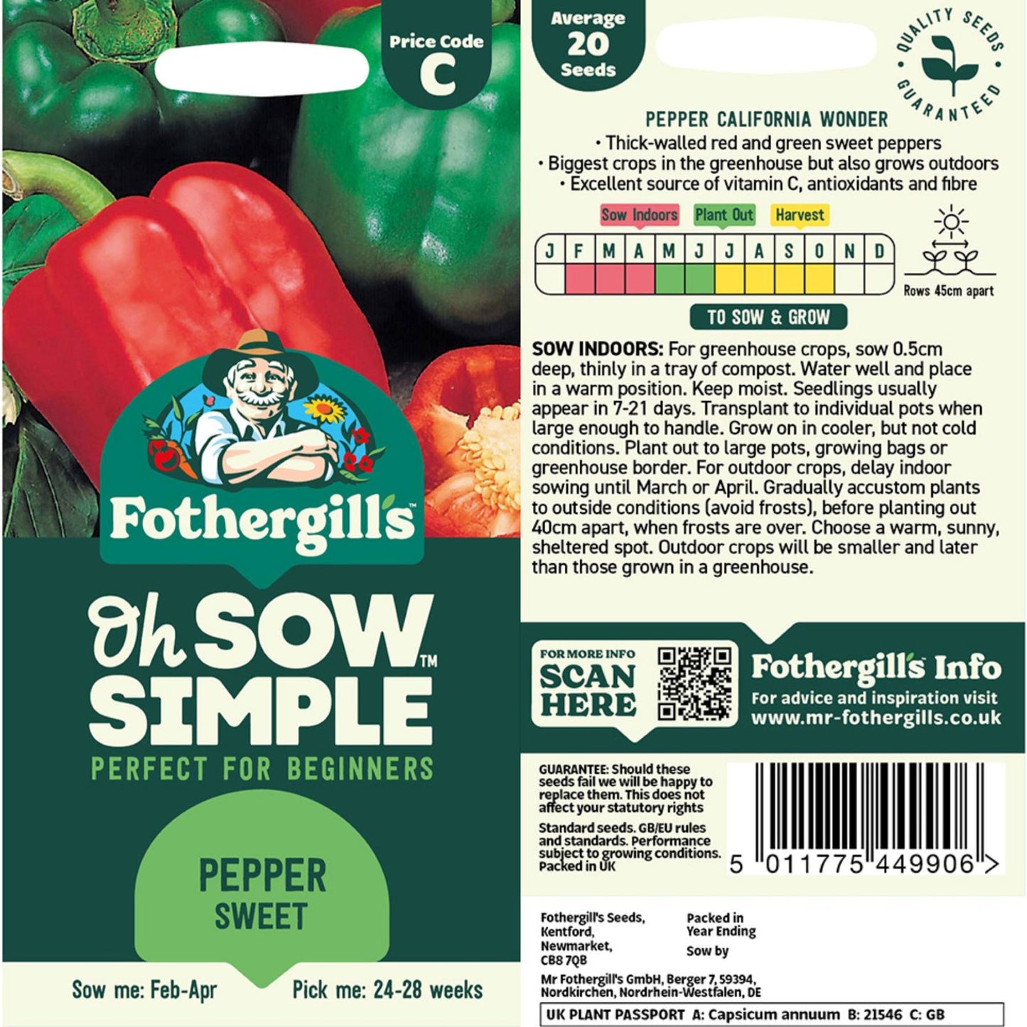 Grow your own sweet bell peppers with Pepper Sweet seeds from Easy to Grow! These vibrant red and green peppers are easy to sow and with heights reaching up to 4 feet tall. Enjoy the delicious taste and health benefits of these thick-walled red and green sweet peppers. Biggest crops are produced in the greenhouse but also grows well outdoors. Peppers are a vital part of the cooking for so many dishes. Best crops will be achieved in a greenhouse, but smaller, later crops can be produced when grown in a sunny sheltered location outdoors. Get yours today!