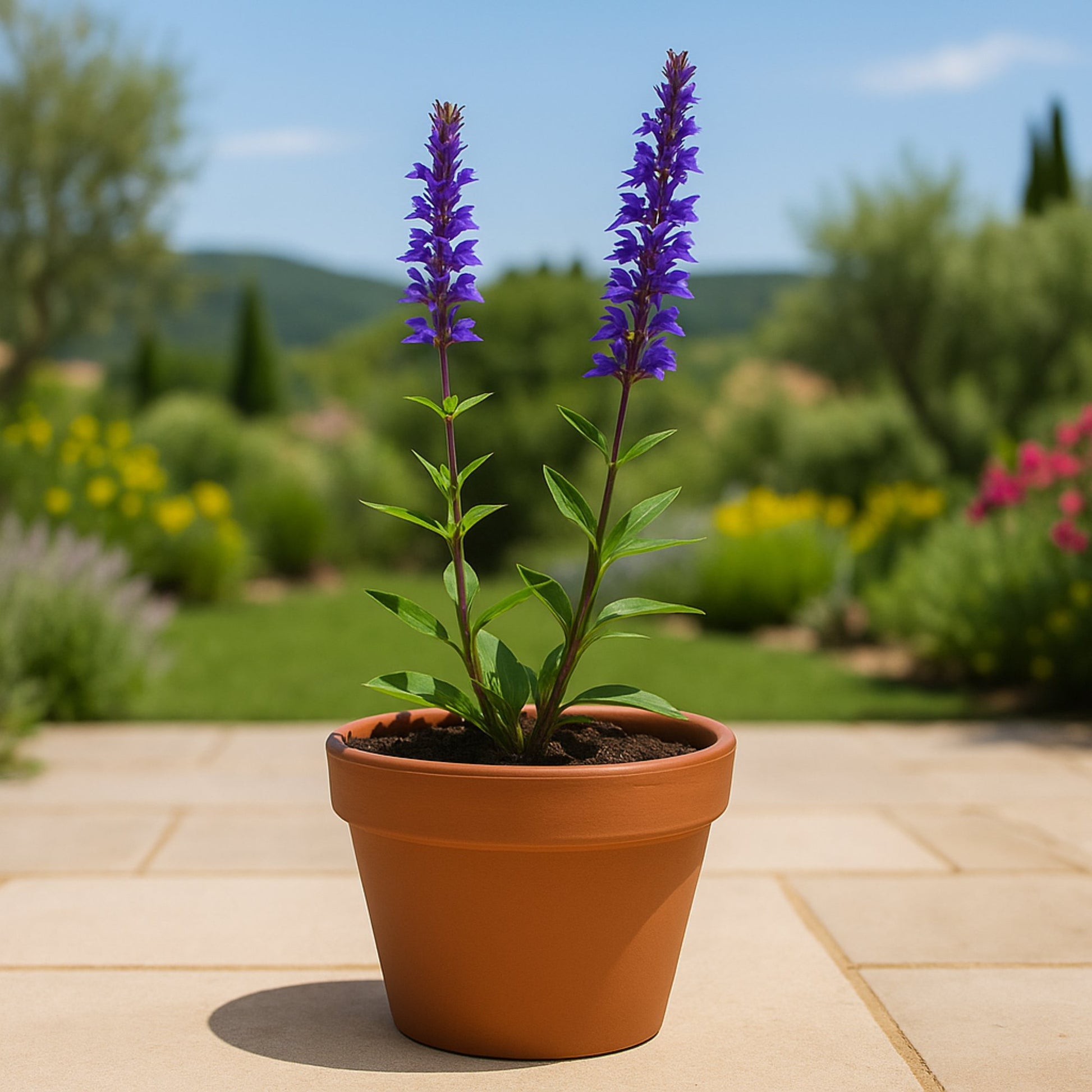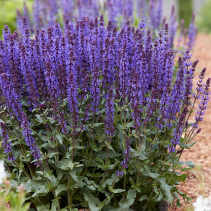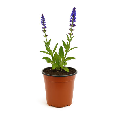 Dazzle your garden with Bumbleblue Sage's striking violet-blue flower spikes that rise dramatically above textured, crinkled foliage. These pollinator magnets put on a show from late spring through summer, especially when you snip away spent blooms to keep the floral fireworks going! Perfect for adding vertical drama to beds, borders, or containers - this sage is ready to grow in your garden.